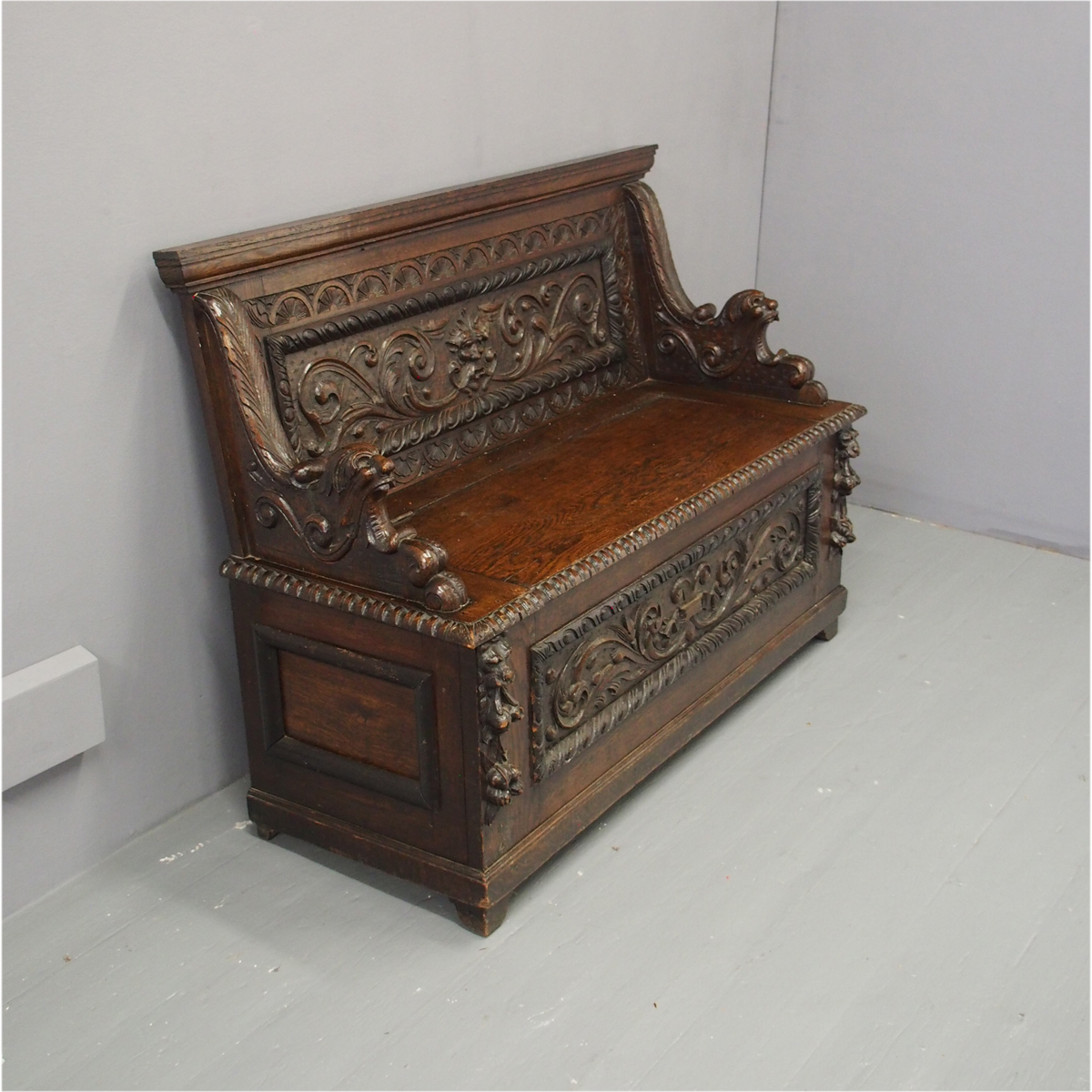 Carved Oak Hall Settle c.1880 (1 of 13)