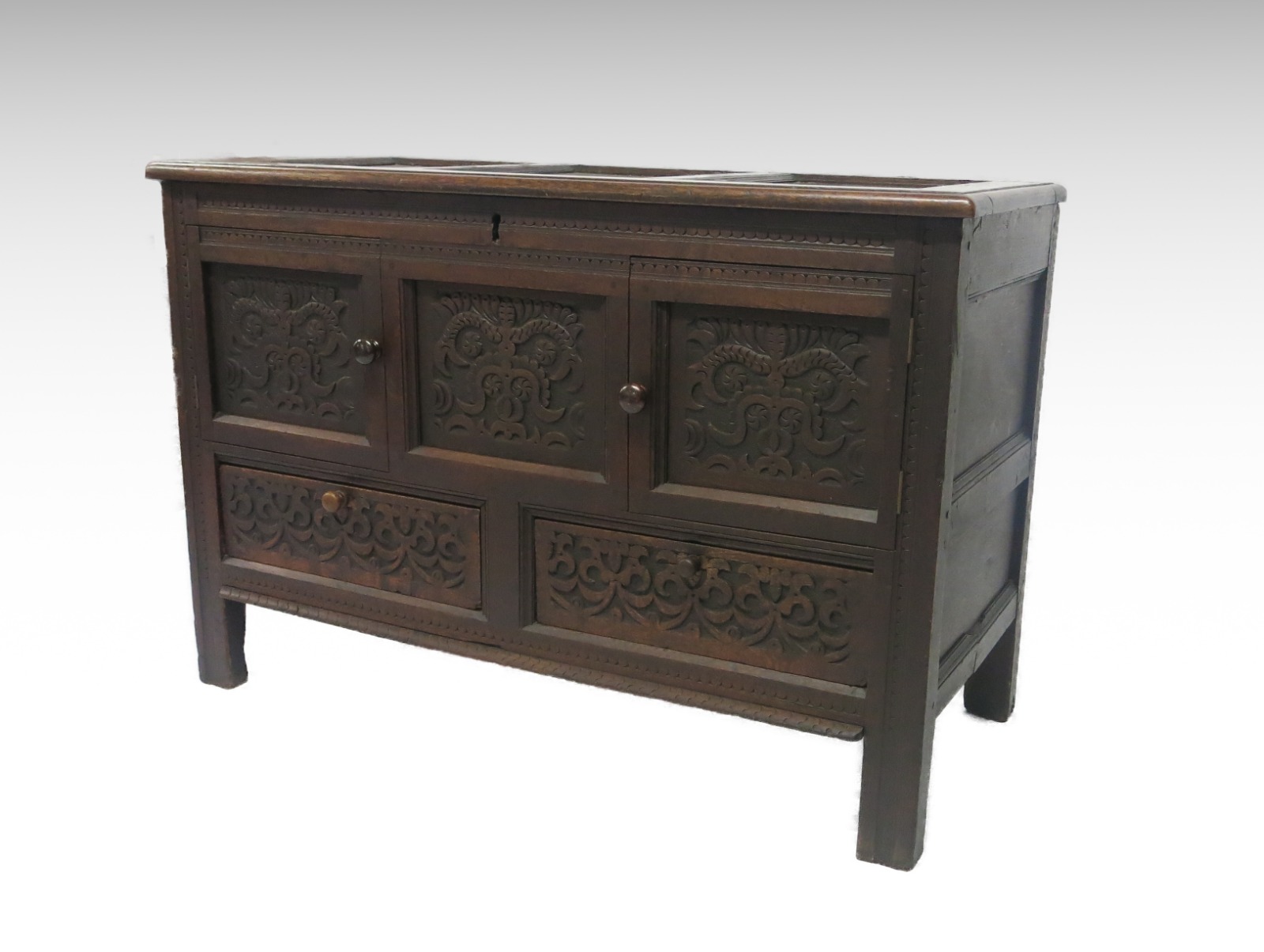 Carved Oak Mule Chest Coffer Style Cupboard