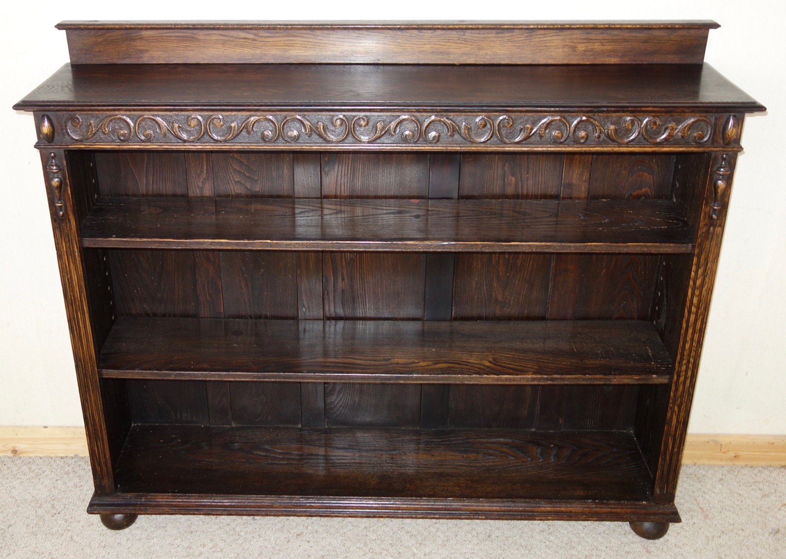 Carved Oak Open Bookcase C.1920 (1 of 6)