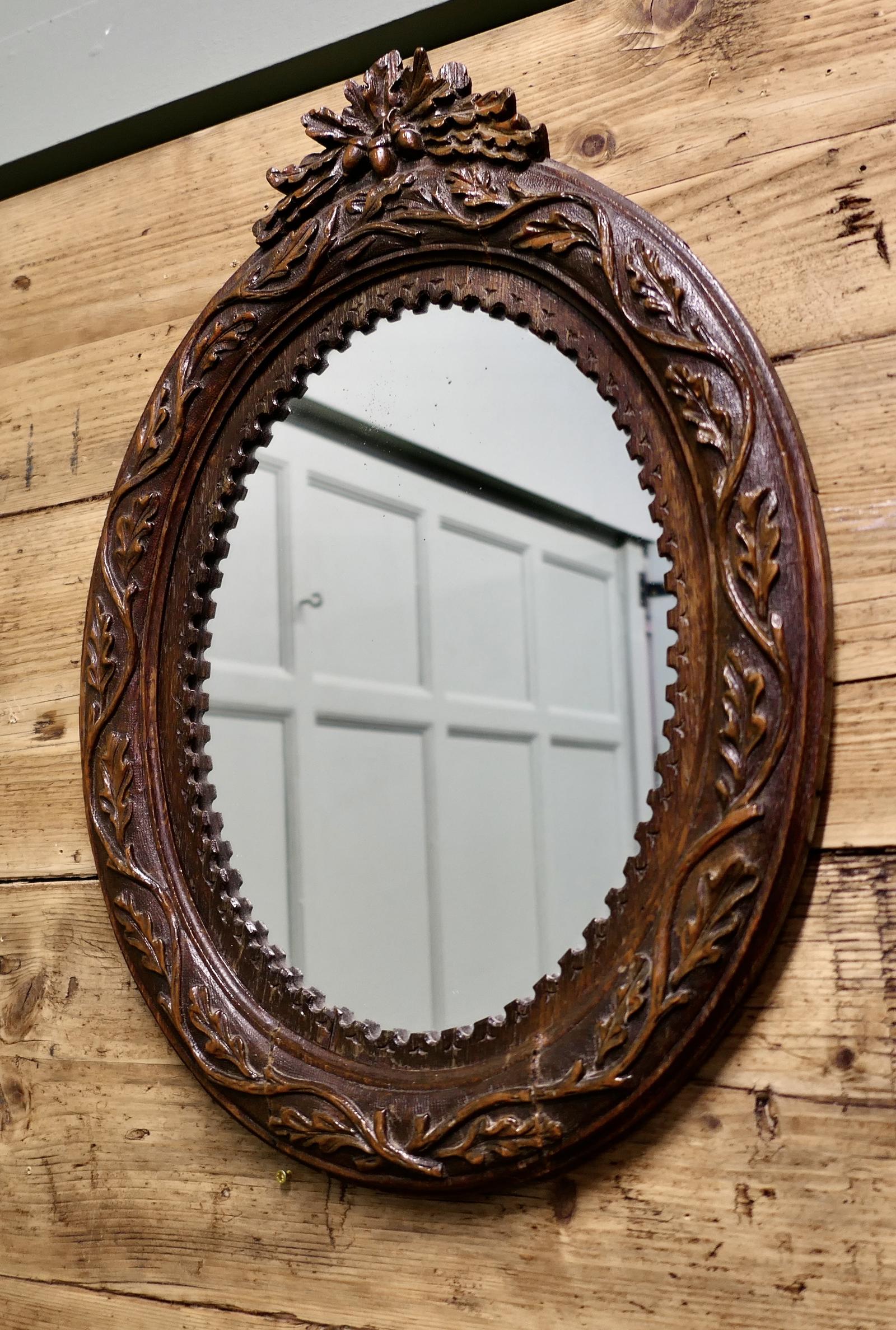 Carved Oak Oval Wall Mirror
