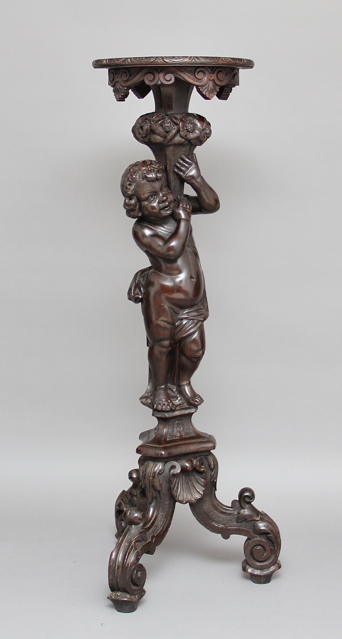 Carved Oak Pedestal / Torcher Stand c.1870 (1 of 10)