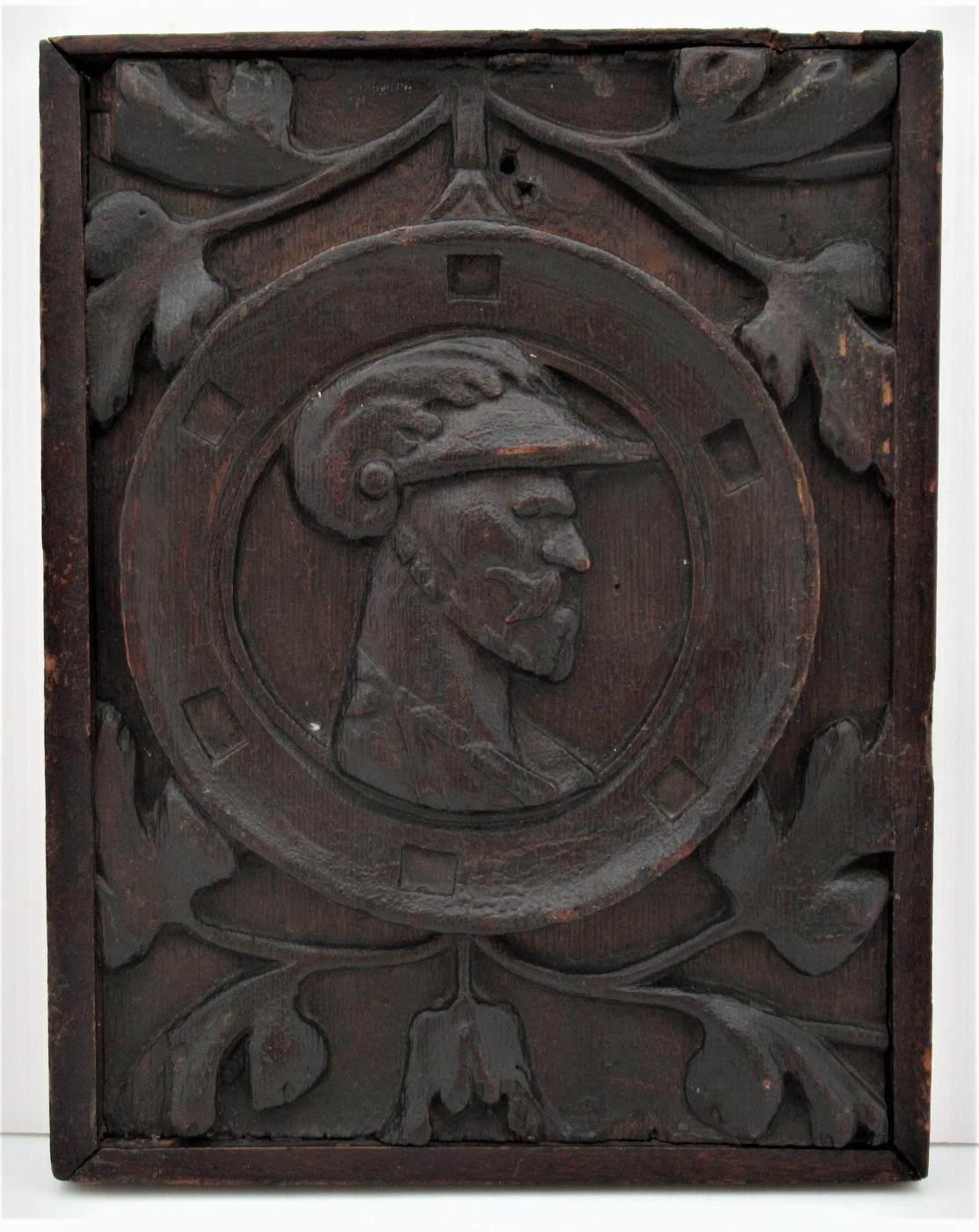 Carved Oak Romayne Panel, 17th Century with Vine Leaf Border, Possibly French