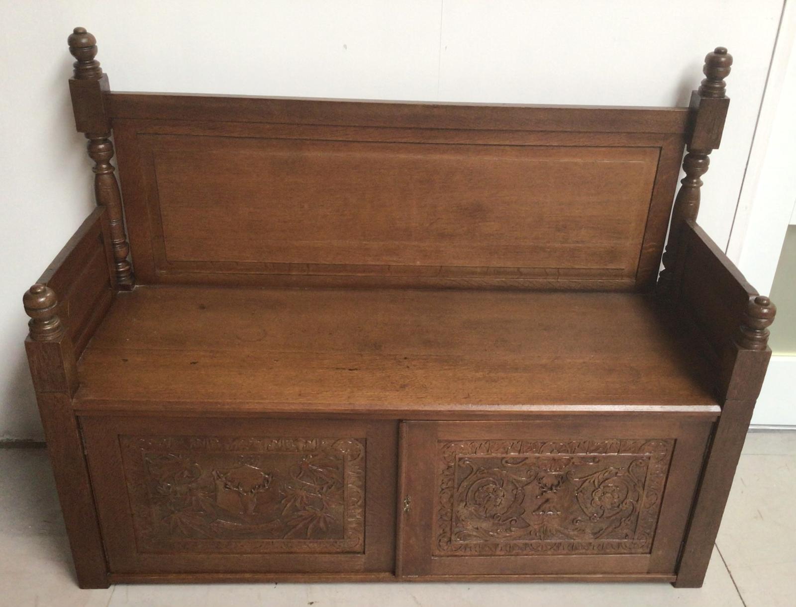 Carved Oak Settle Bench