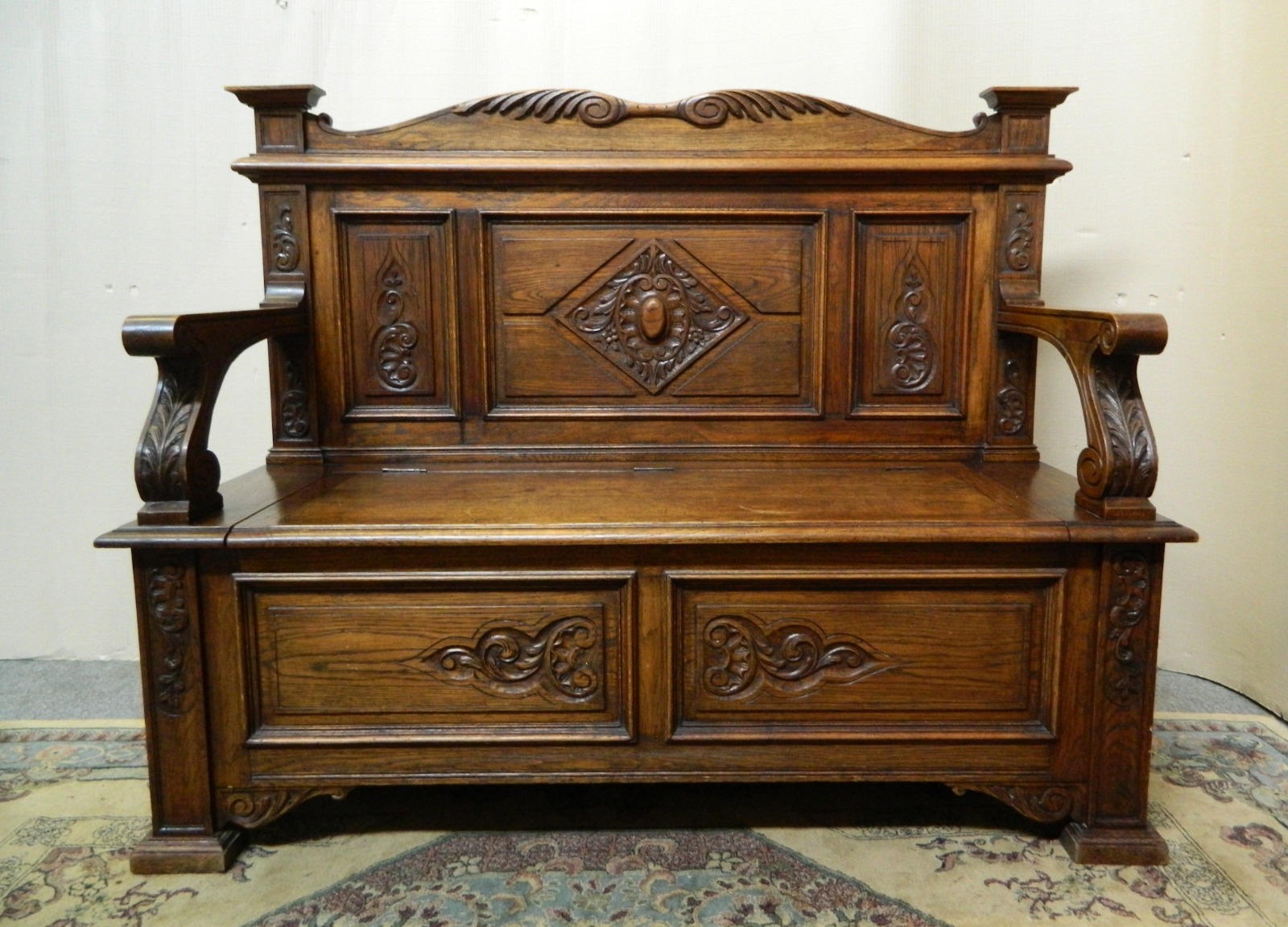 Carved Oak Settle c.1900