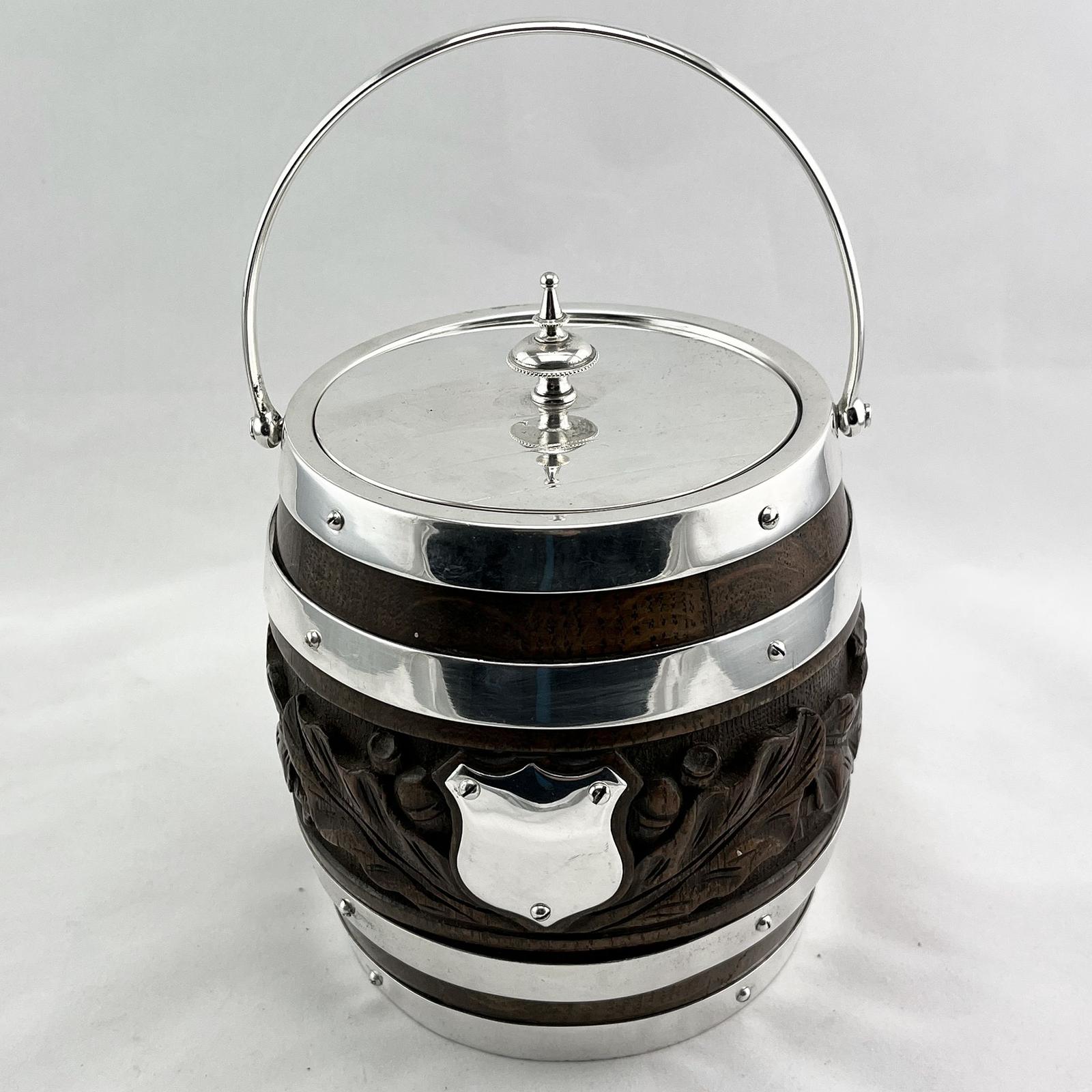 Carved Oak & Silver Plated Barrel with China Liner (1 of 5)