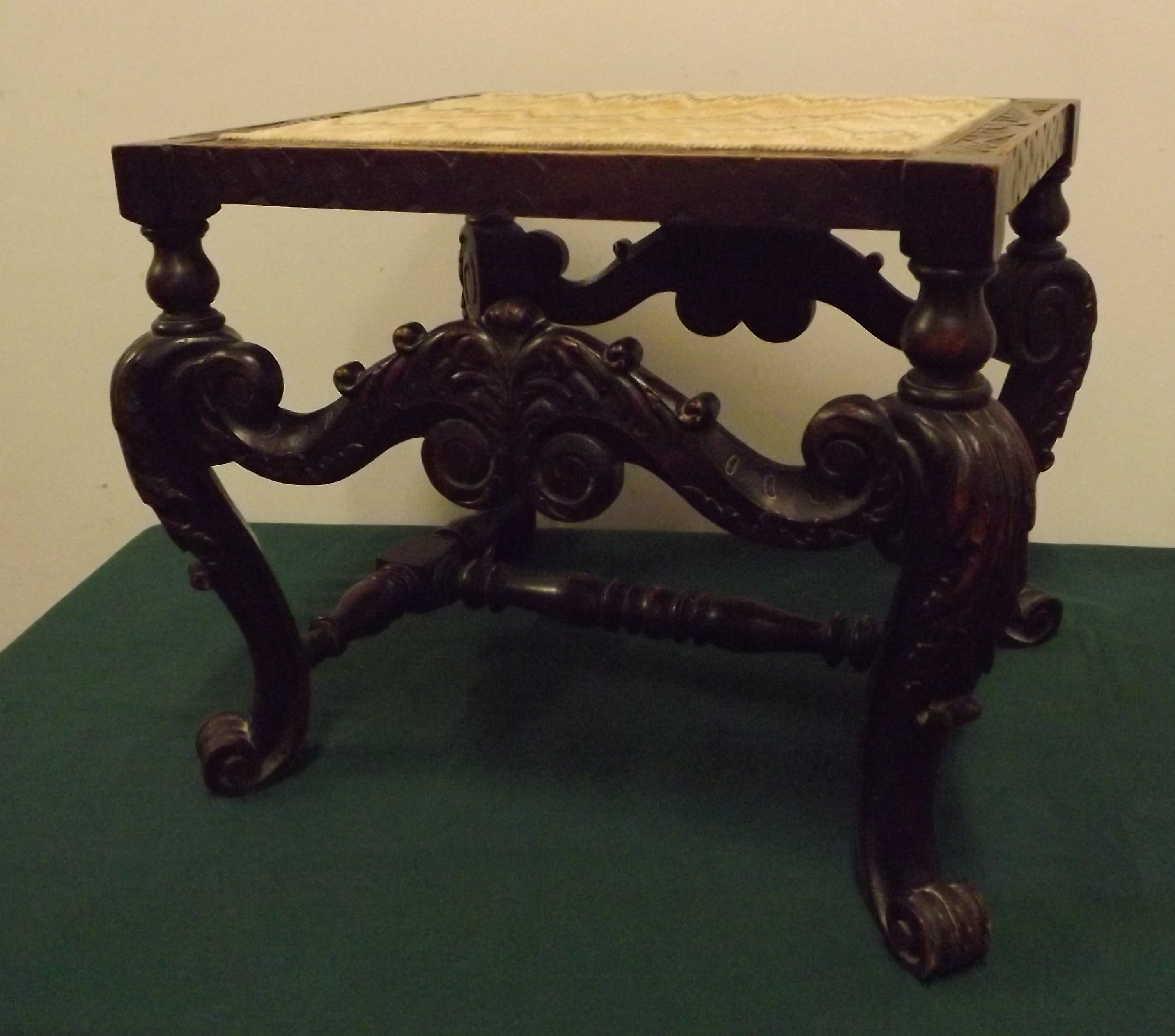 Carved Oak Upholstered Footstool Jacobean Style