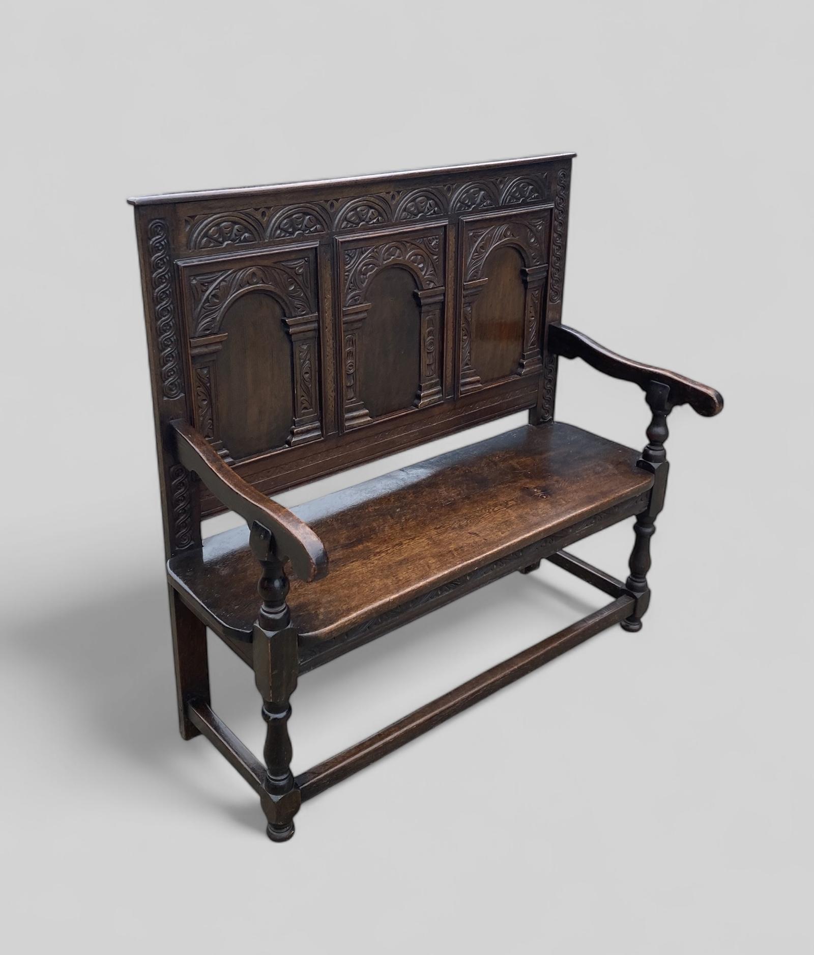 Carved Oak Victorian Bench (1 of 9)