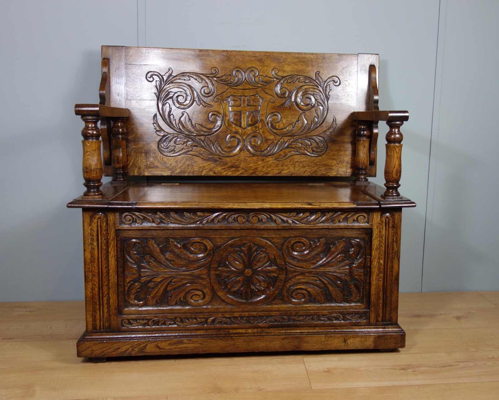 Carved Oak Victorian Monks Bench (1 of 1)