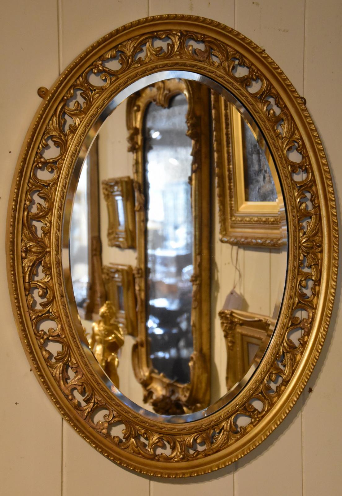 Carved Open Fretwork Giltwood Oval Mirror (1 of 3)