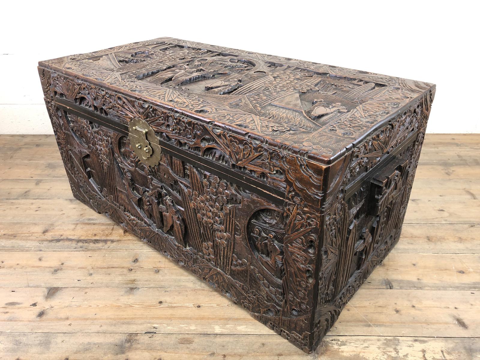 Carved Oriental Camphorwood Chest or Trunk (1 of 13)