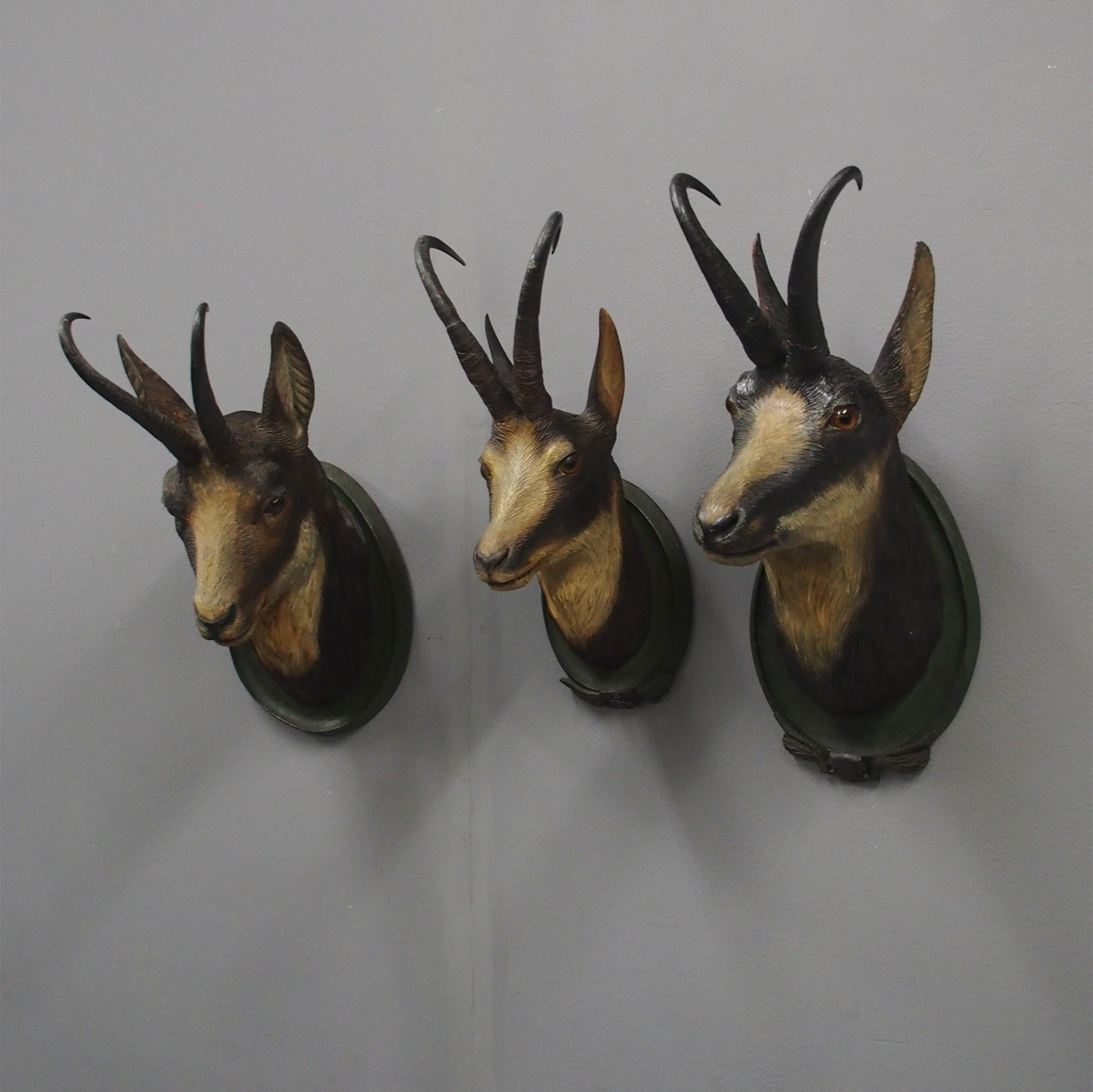 Carved Painted Swiss or Black Forest Ibex Heads (1 of 1)