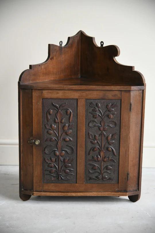 Carved Walnut Corner Wall Cupboard (1 of 9)