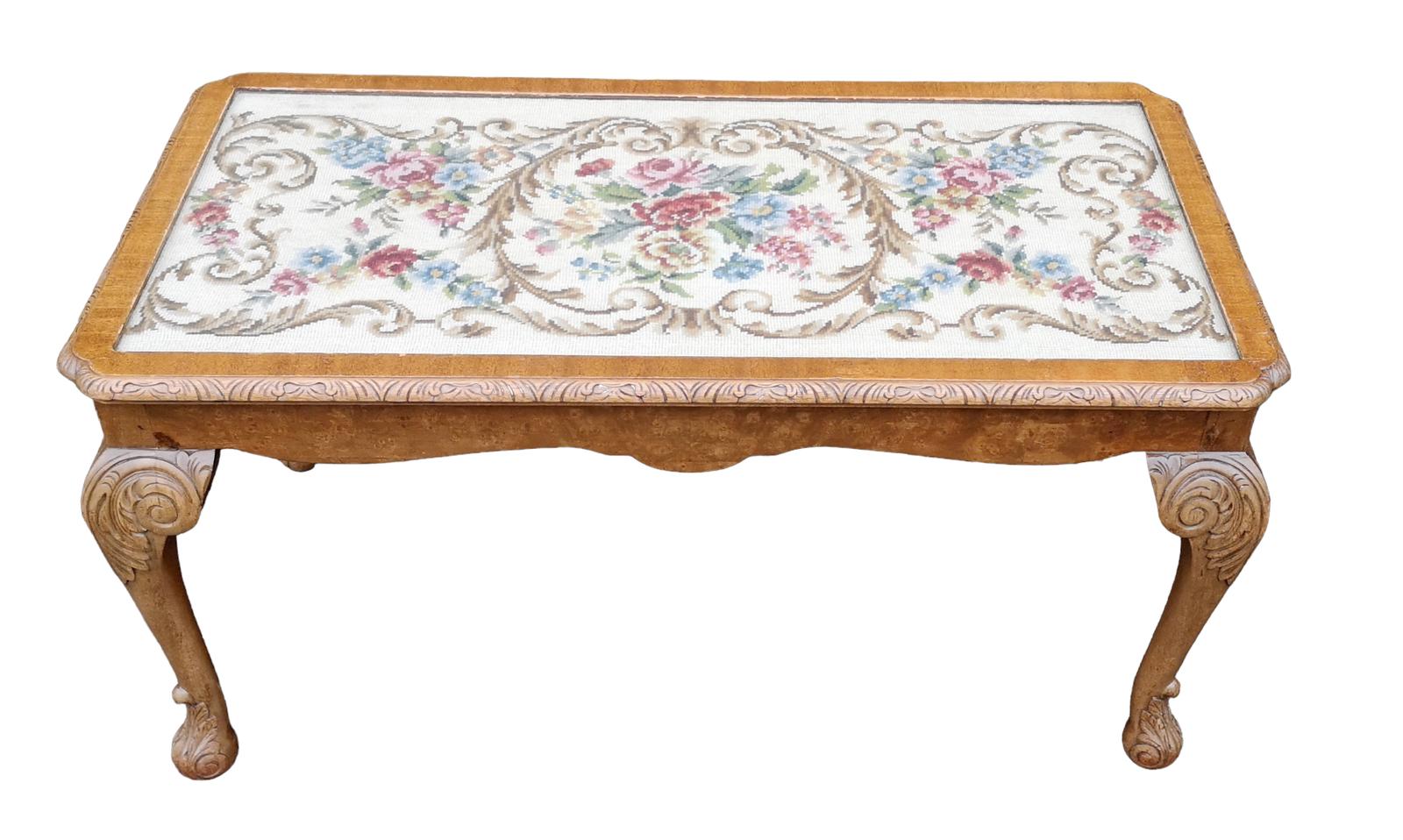 Carved Walnut & Needlework Coffee Table (1 of 12)