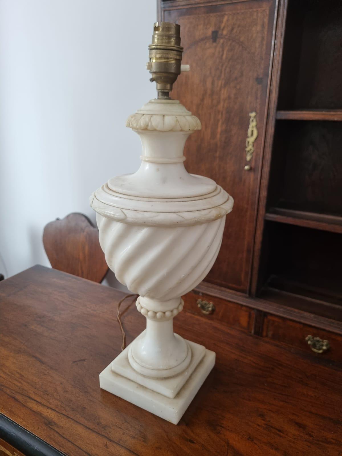 Carved White Marble Table Lamp Base
