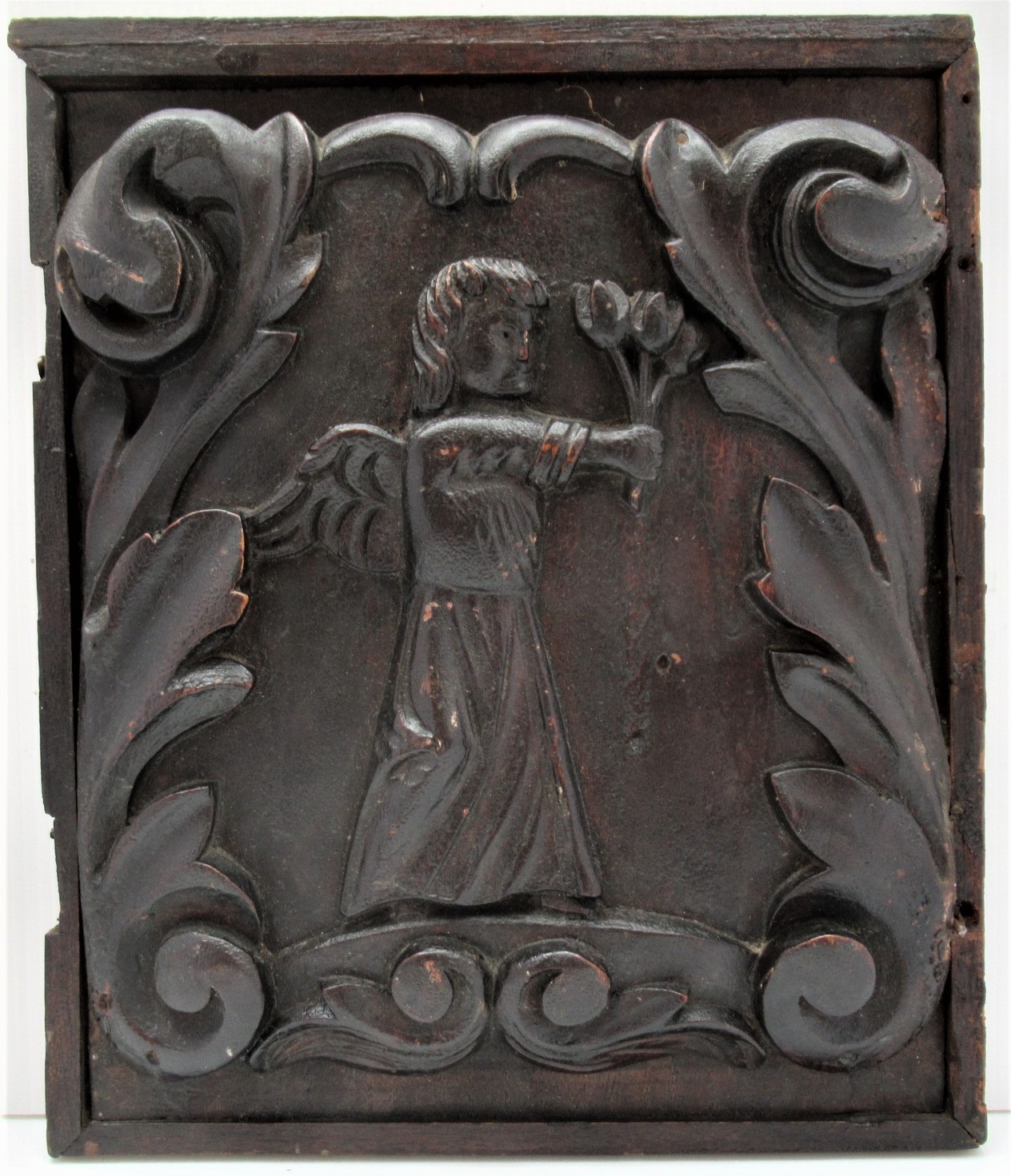 Carved Wood Angel with Tulips in Acanthus Border, 17th Century or Earlier