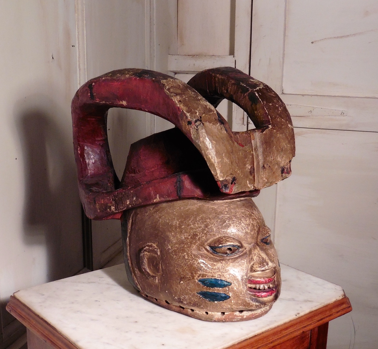 Carved Wooden Ceremonial Tribal Mask Gelede from Nigeria