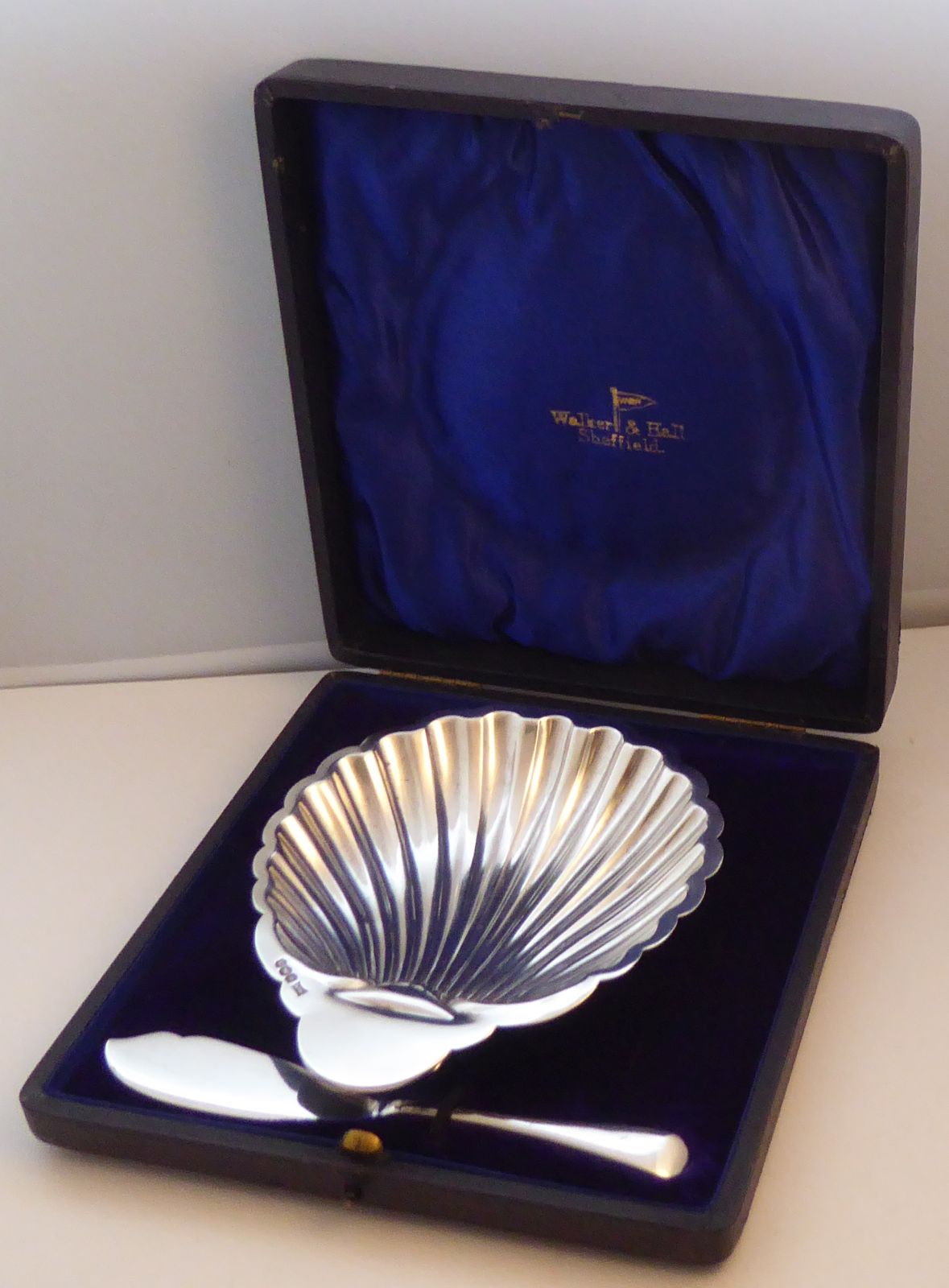 Cased 1918 Solid Silver Butter Dish Dishes Knives Knife Set Walker & Hall