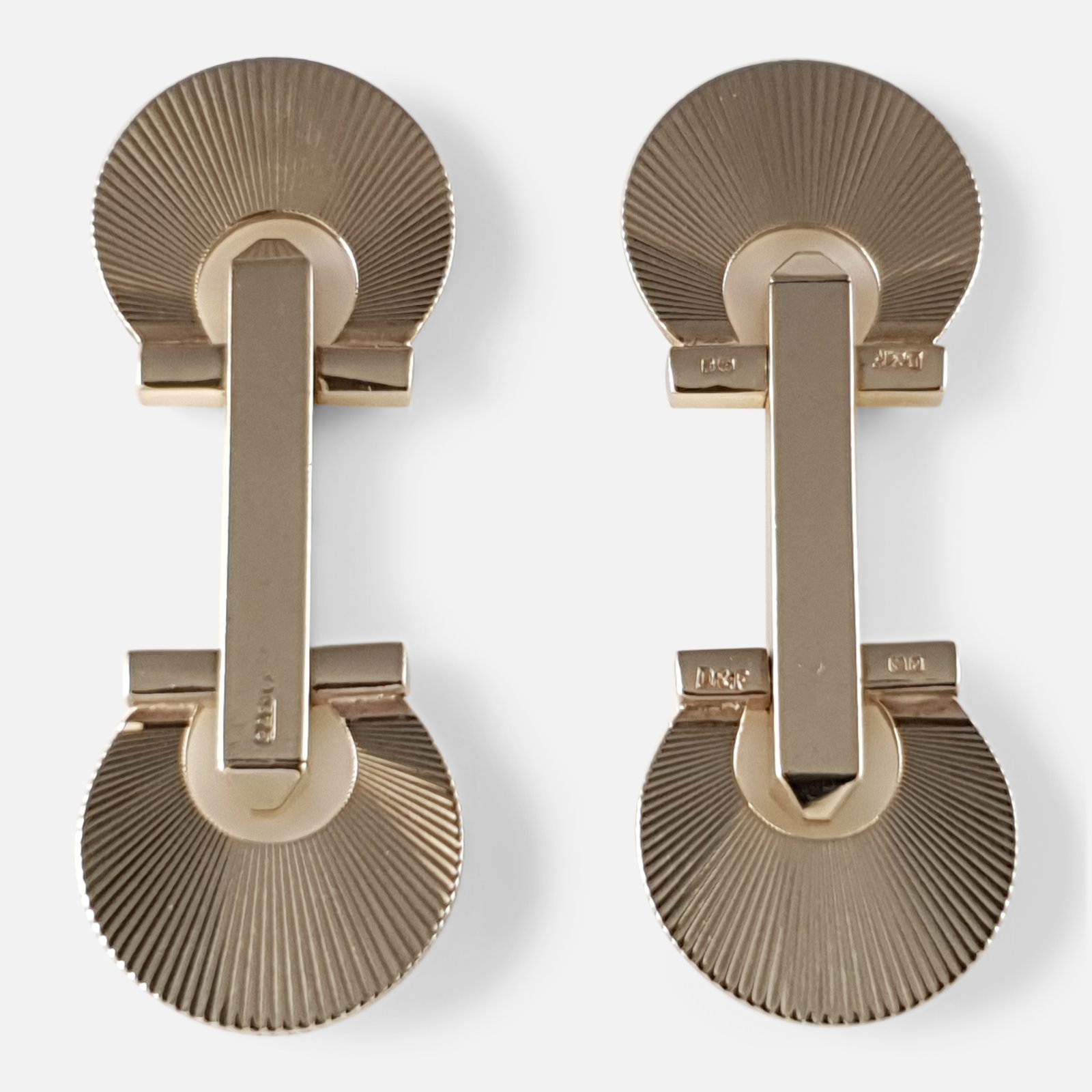 Cased 9ct Gold 'Fan' Style Locking Cufflinks Deakin & Francis 1958