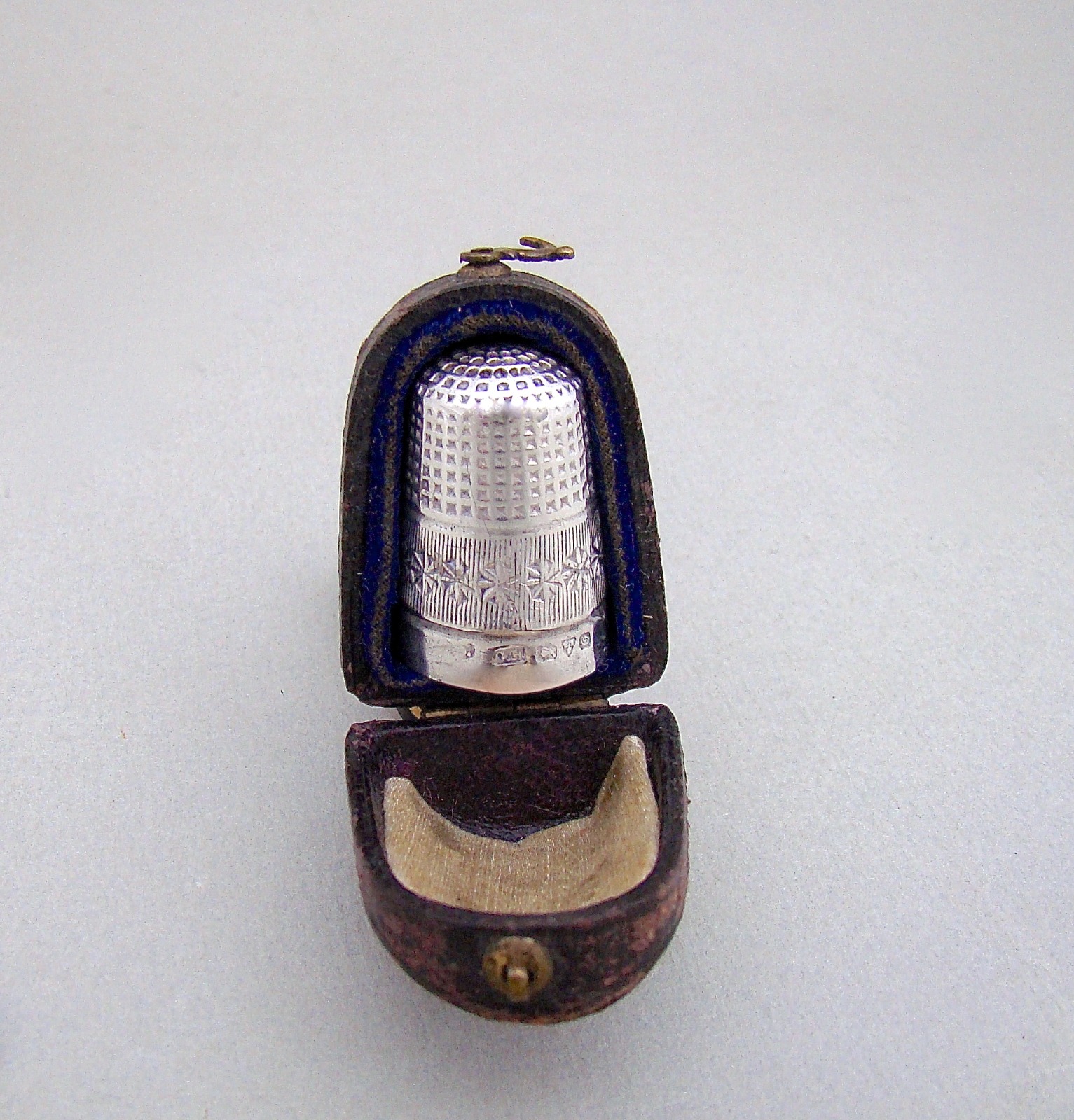 Cased Edwardian Silver Thimble by Charles Horner, Chester 1903