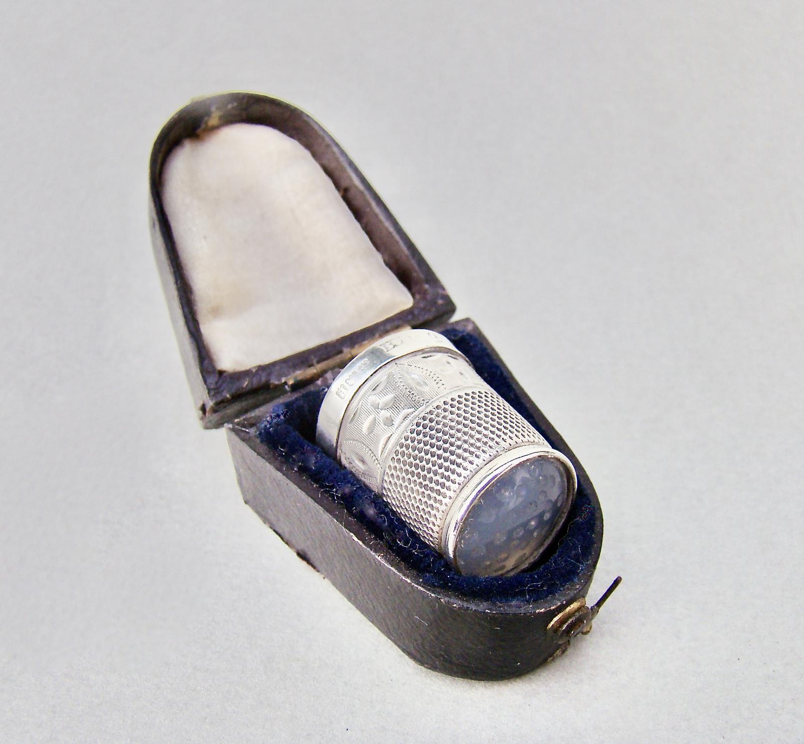 Cased George V Silver & Agate Thimble by James Swann & Son, Birmingham 1932
