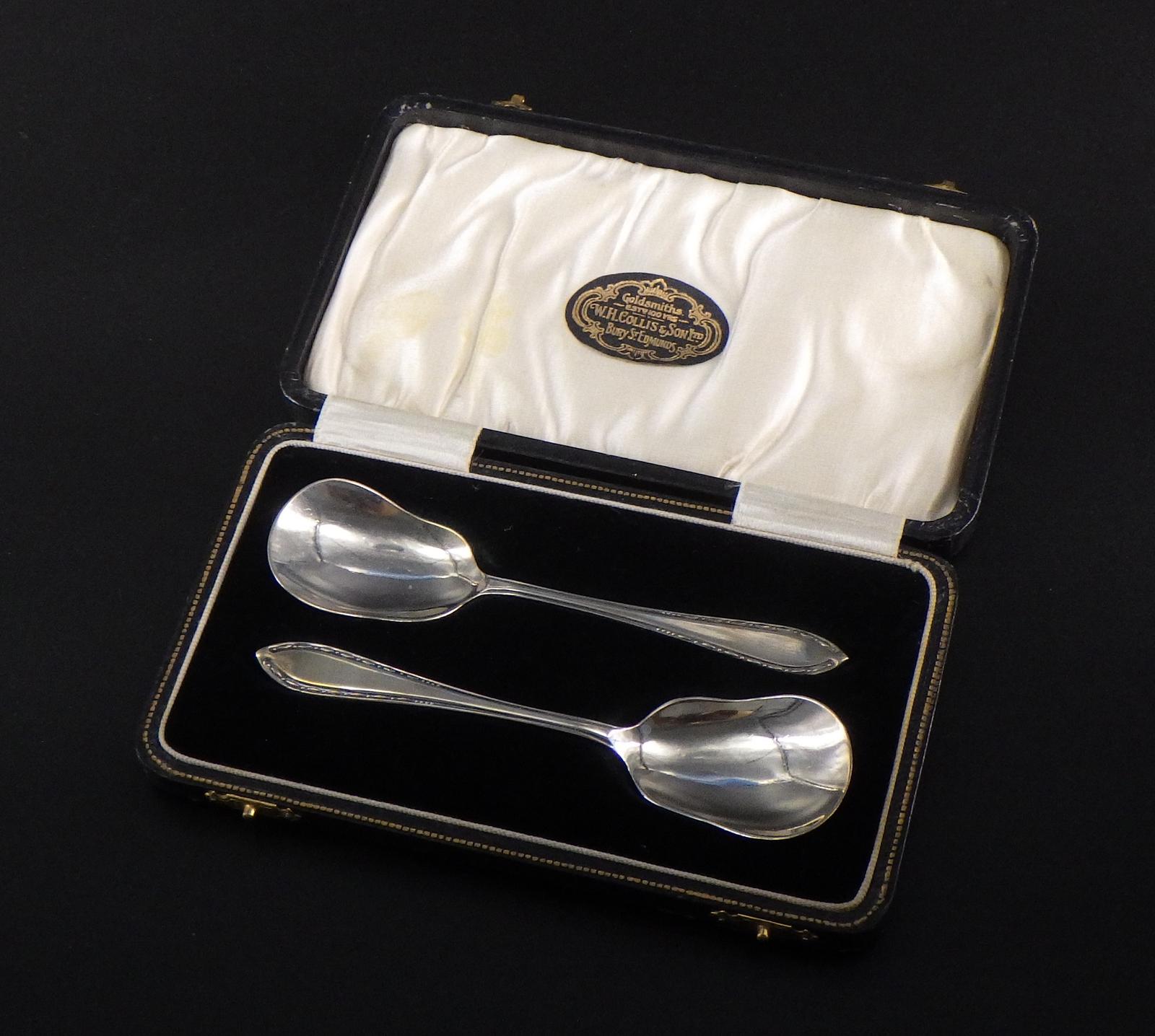 Cased Hallmarked Pair of Silver Preserve Spoons - Birmingham 1930 by Richard Richardson
