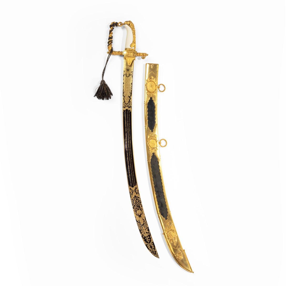 Cased Lloyds Sword for valour awarded to Lt. Ogle Moore of H.M.S. Maidstone, 1804 (1 of 19)