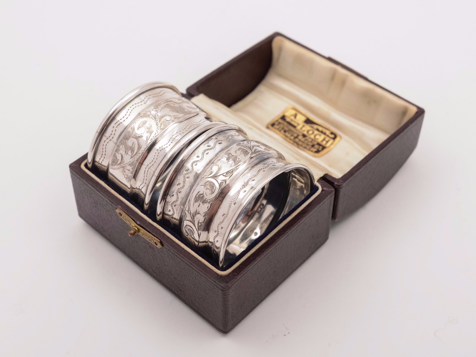 Cased Matched Pair of Silver Napkin Rings, Chester 1910