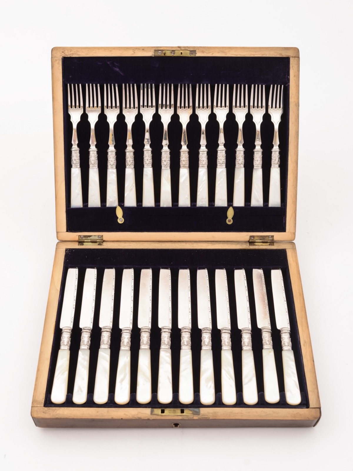 Cased Mother of Pearl & Silver Plated Dessert Set c.1905