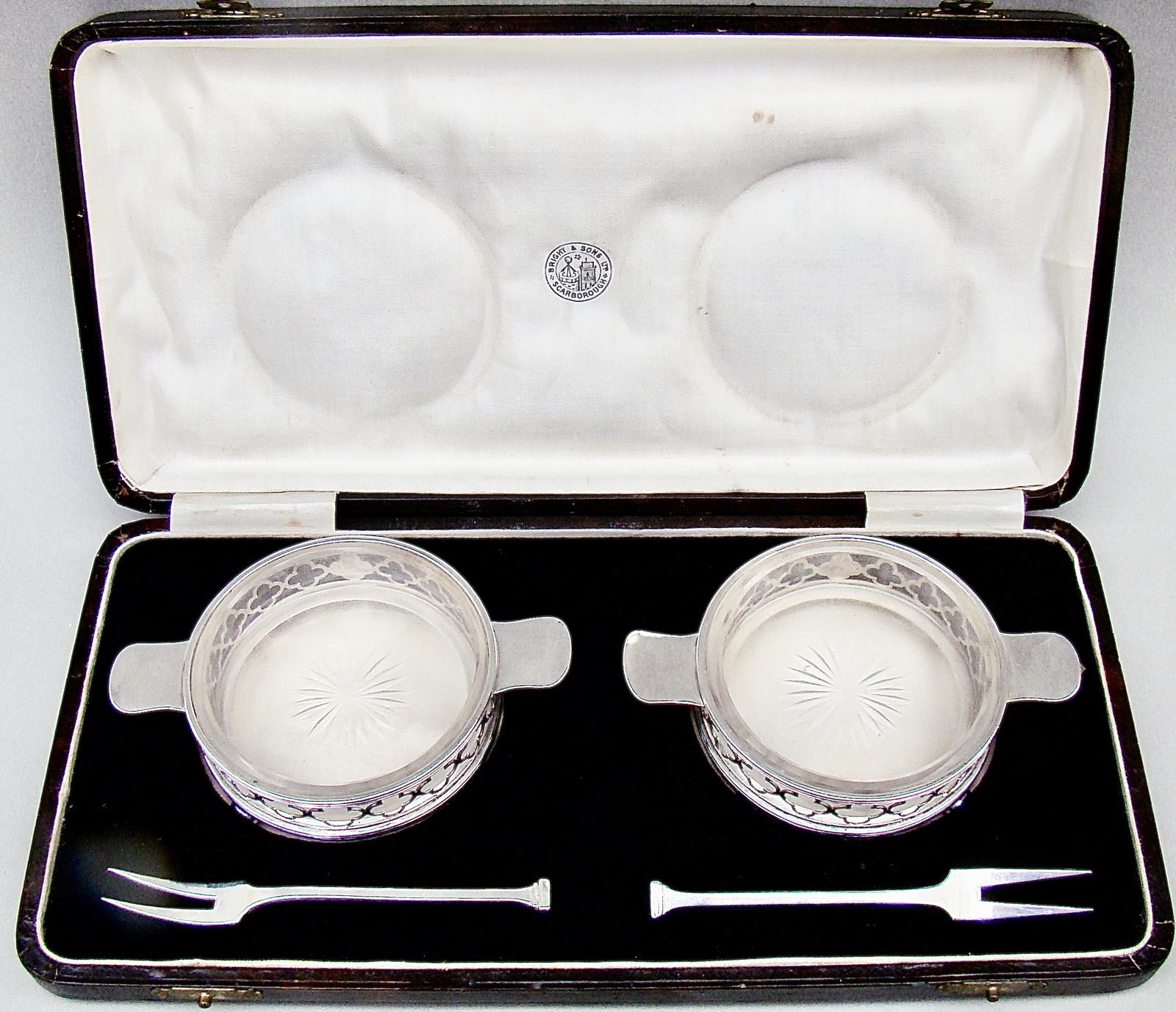 Cased Pair of Art Deco Silver Butter Dishes by Charles Perry & Co, Chester 1926