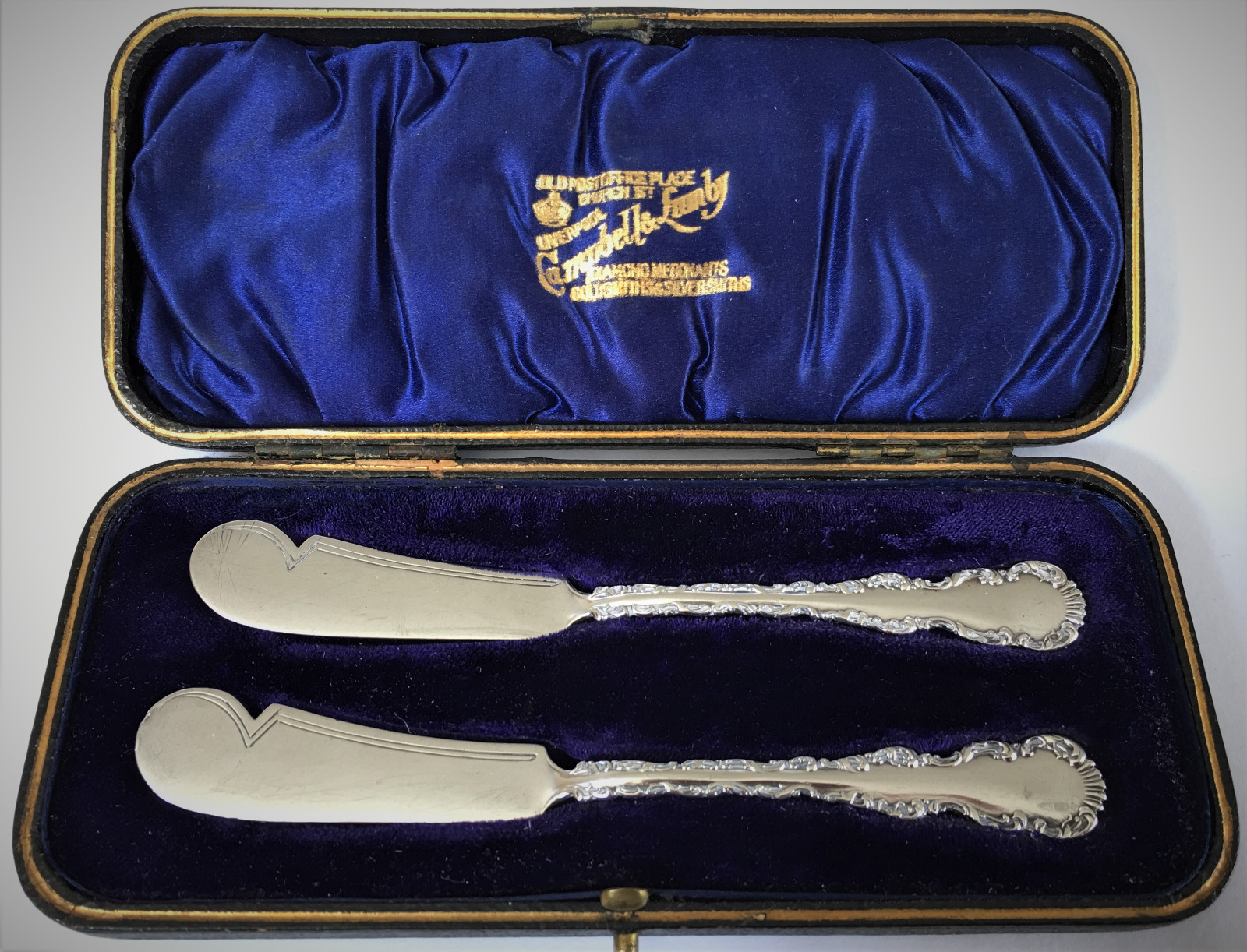 Cased Pair of Edwardian Silver Butter Knives; Sheffield 1903, Lee & Wigfull / Henry Wigfull