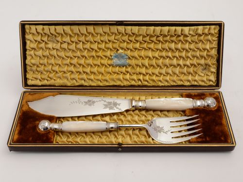 Cased Pair of Mother of Pearl Fish Servers c.1880