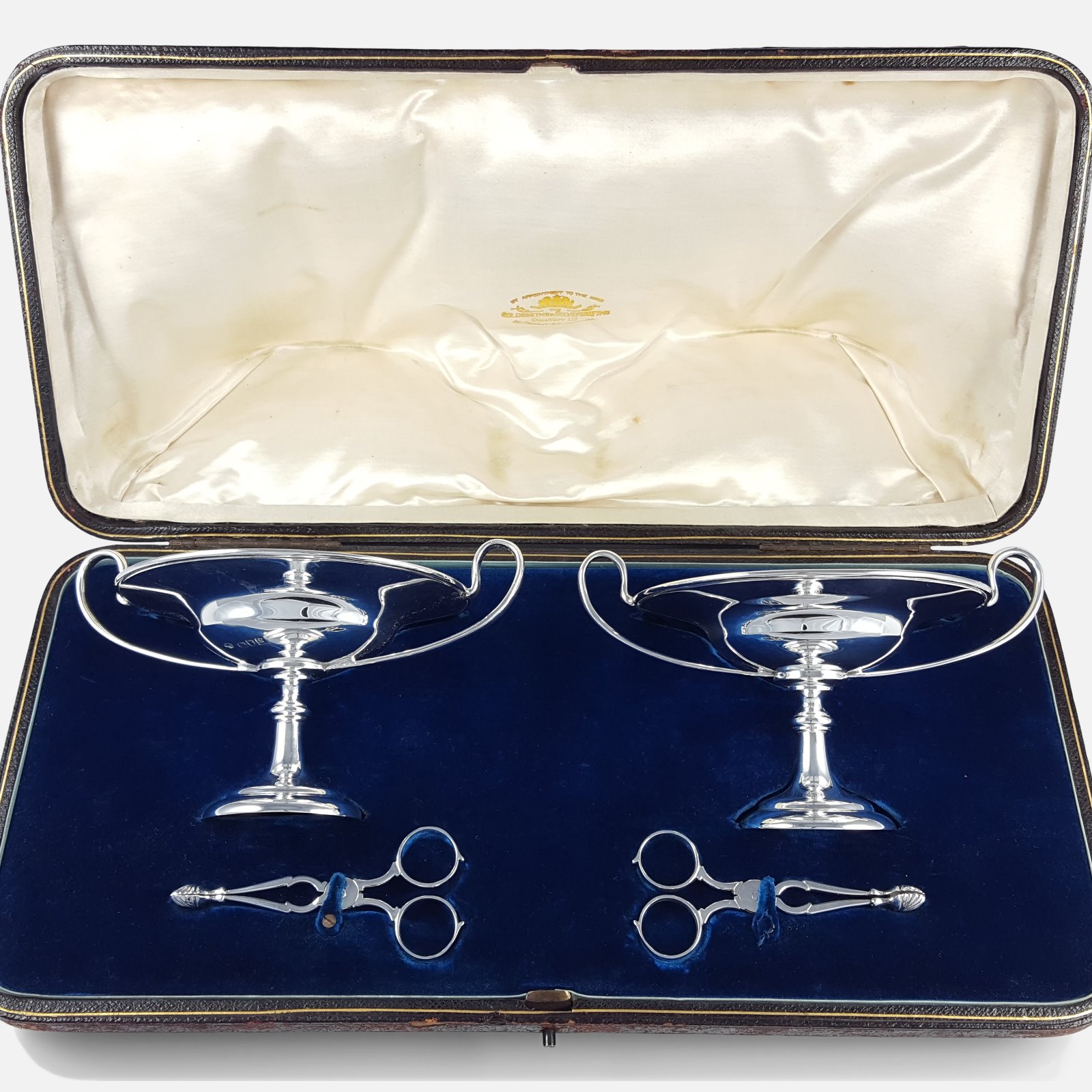 Cased Pair of Silver Bon Bon Dishes & Nips Goldsmiths & Silversmiths 1902