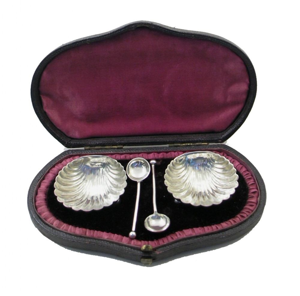 Cased Pair of Victorian Silver Salts & Spoons 1891 (1 of 1)