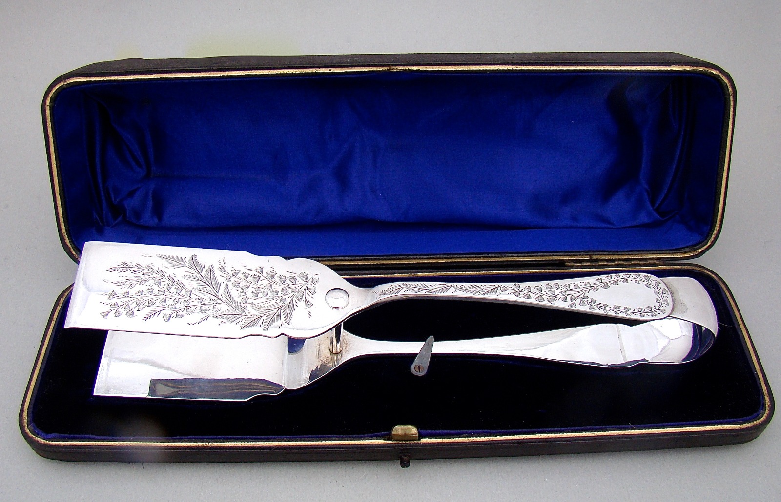 Cased Pair of Victorian Solid Silver Asparagus Tongs by Hilliard & Thomason, Birmingham 1900