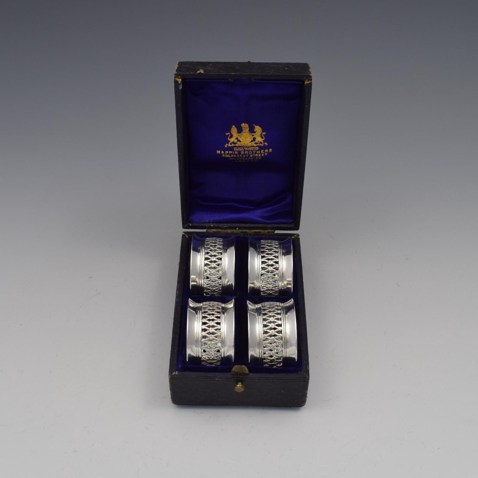Cased Set 4 Victorian Silver Napkin Rings Nautical / Fishing Theme