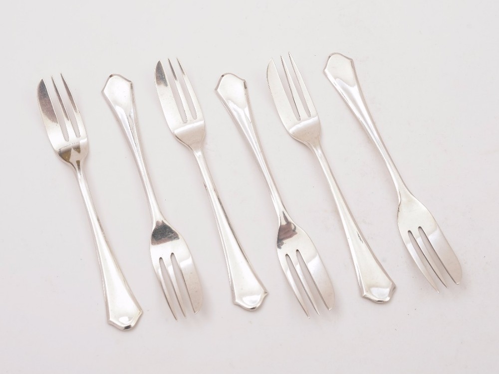 Cased Set of 6 Art Deco Silver Cake Forks, Birmingham 1932