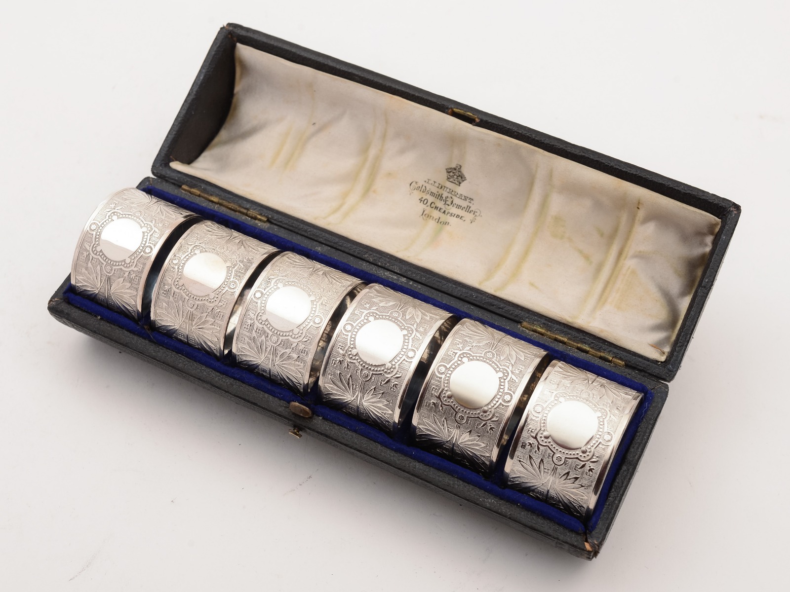Cased Set of 6 Silver Plated Napkin Rings c.1900
