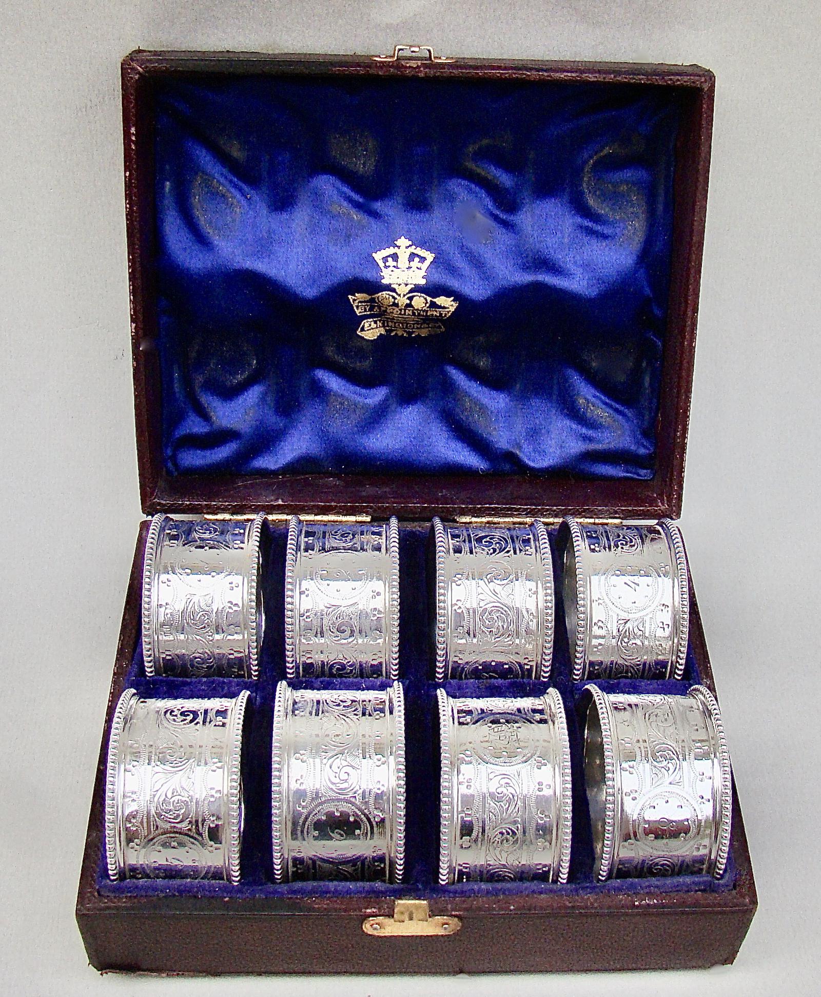 Cased Set of Eight Victorian Silver Plated Numbered Napkin Rings c.1880