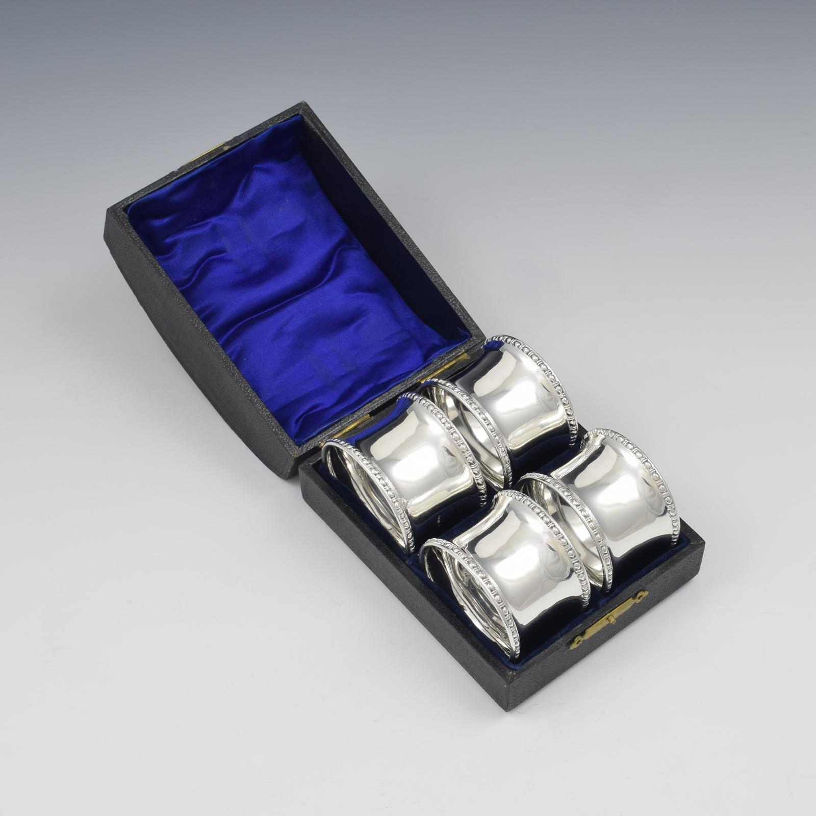Cased Set of Four Antique Silver Napkin Rings 1913 (1 of 5)