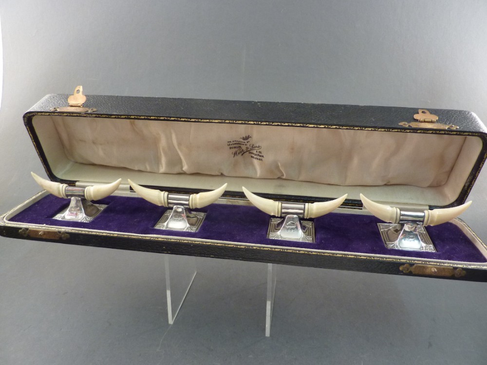 Cased Set of Four Silver & Ivory Knife Rests 1910