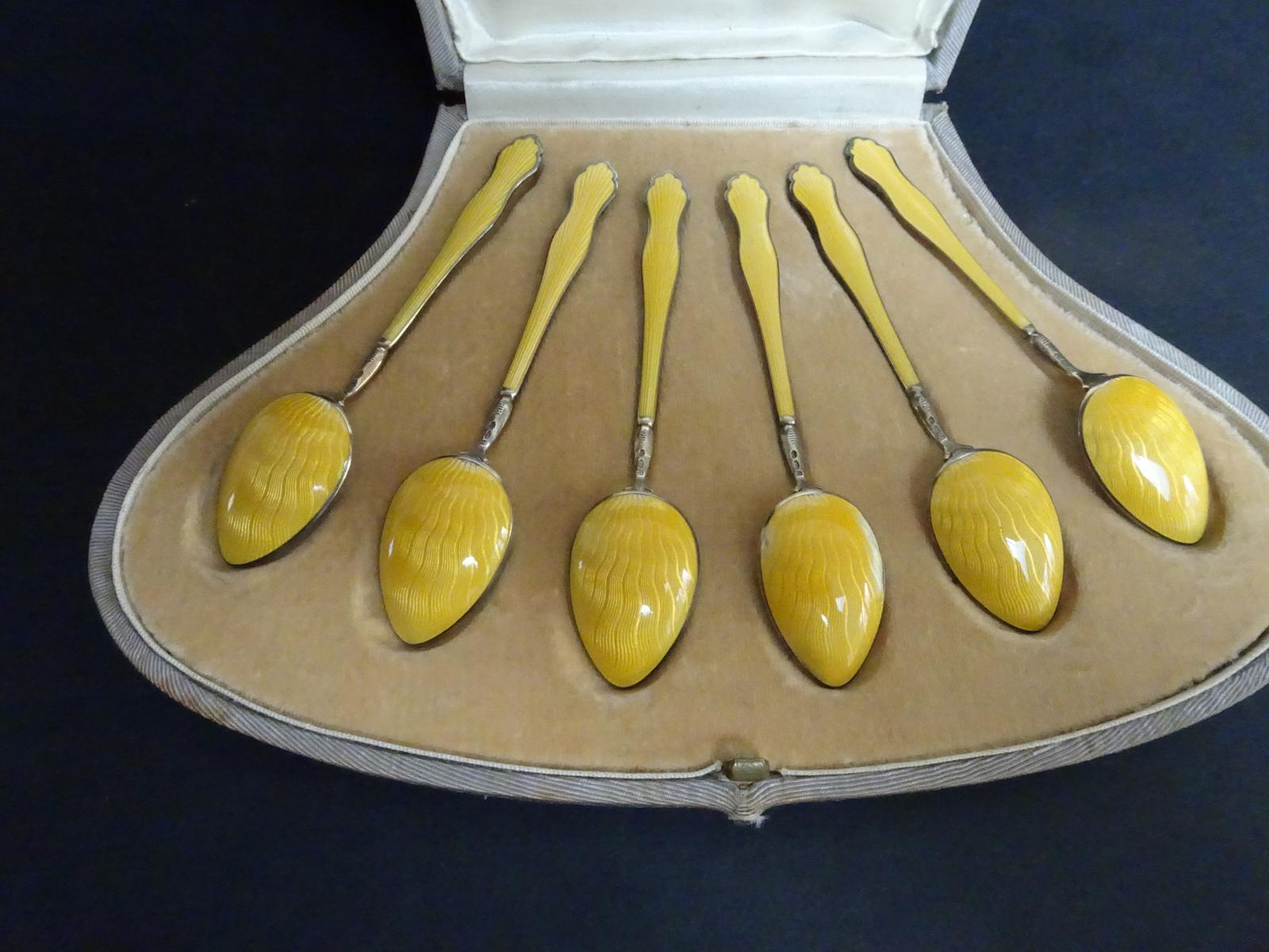 Cased Set of Silver & Enamel Teaspoons 1905