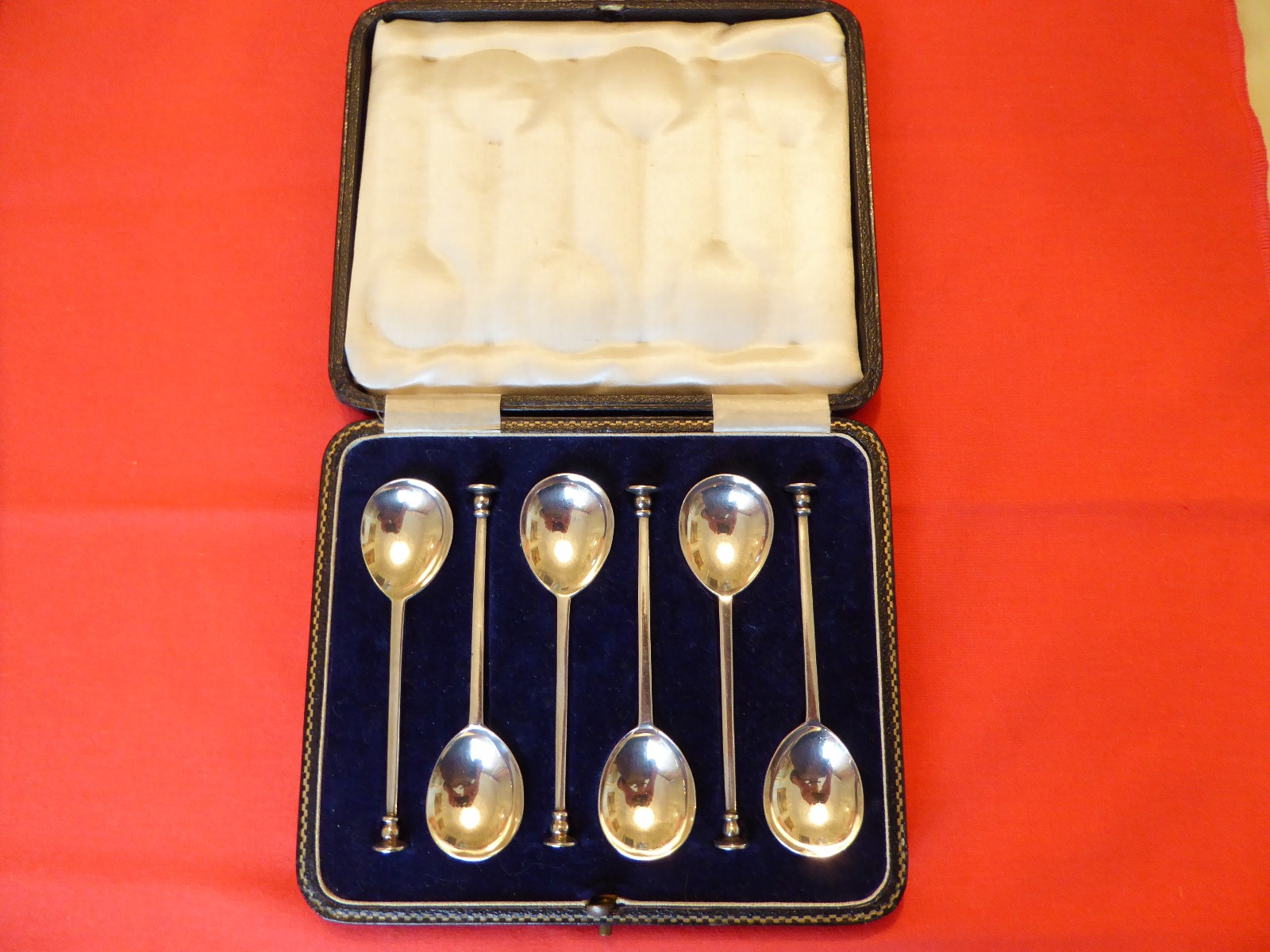 Cased Set of Six English Silver Teaspoons Thomas Bradbury 1929