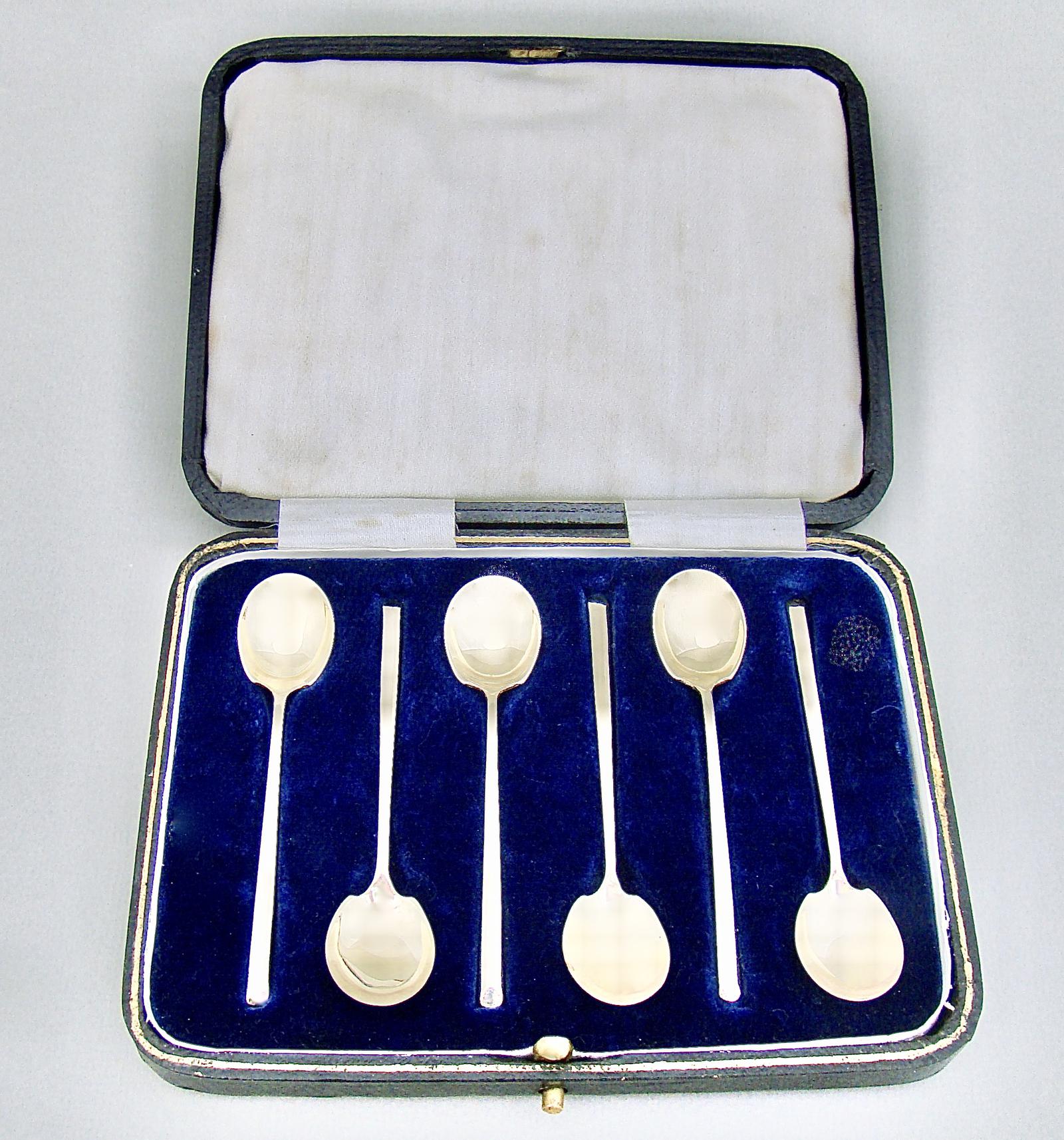 Cased set of six silver gilt demi-tasse coffee spoons by James Dixon & Sons, Sheffield 1926