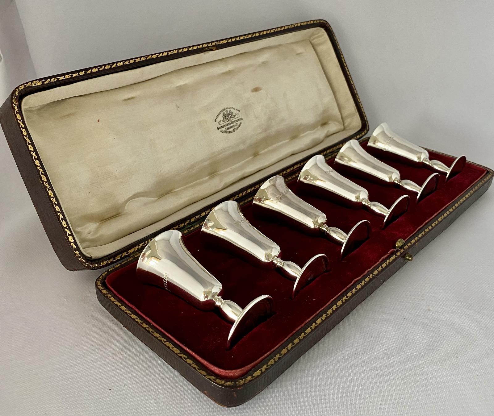 Cased Set of Six Silver Liqueur Goblets - London 1916