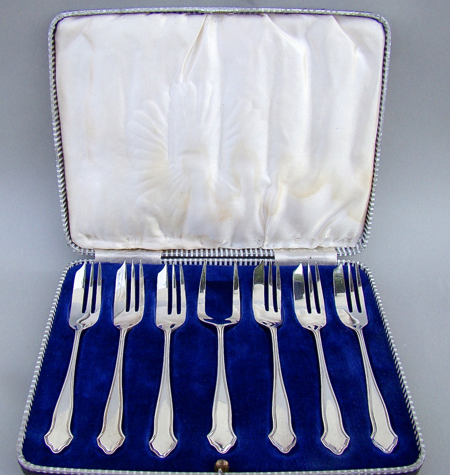 Cased Set of Six Sterling Silver Cake Forks with Matching Serving Prong by the Cooper Brothers, Sheffield 1941