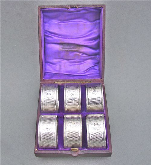 Cased set of Victorian silver plated napkin rings, circa 1870