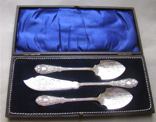 Cased Set of Victorian Silver Plated Preserve Spoons & Butter Knife by Edwin Blyde & co, Sheffield 1880