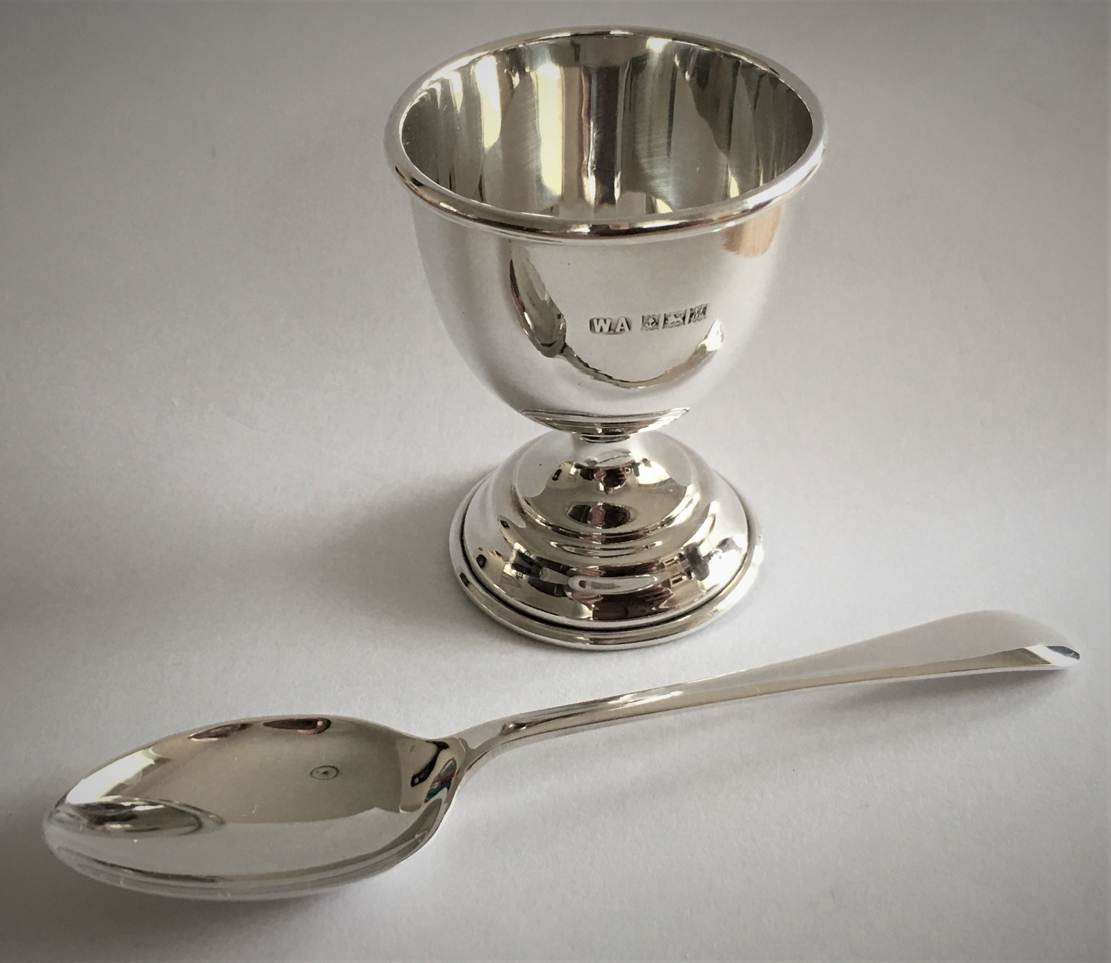 Cased Silver Eggcup and Spoon Christening Set; Birmingham 1961, William Adams Ltd