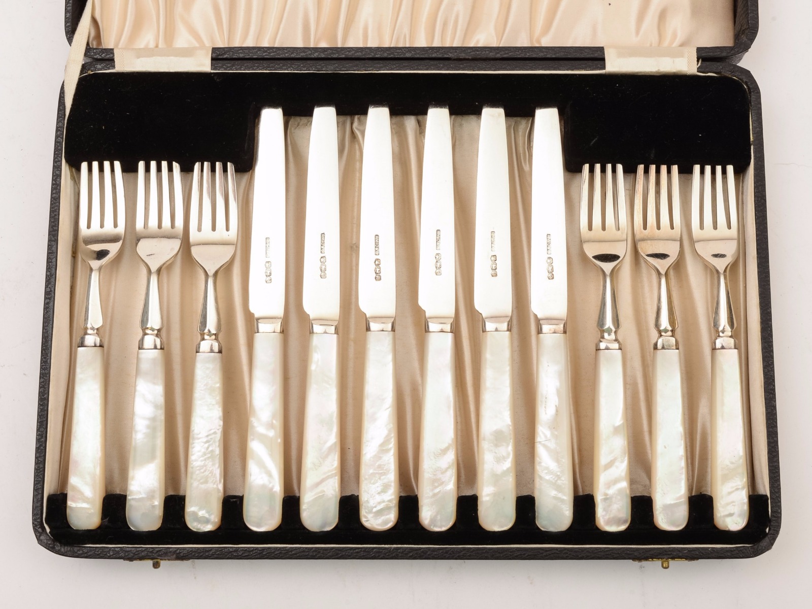 Cased Silver & Mother of Pearl Dessert Set, Sheffield
