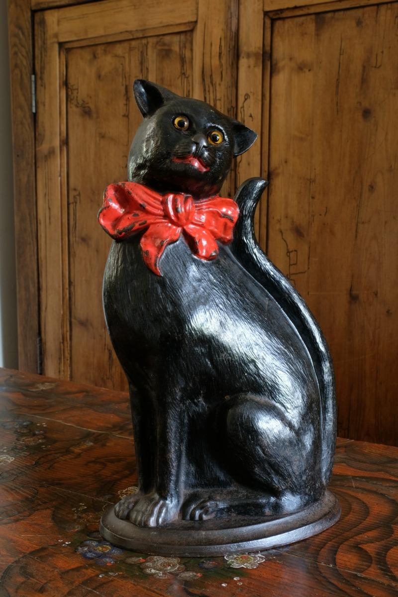 Cast Iron Doorstop of Cat with Glass Eyes c.1910